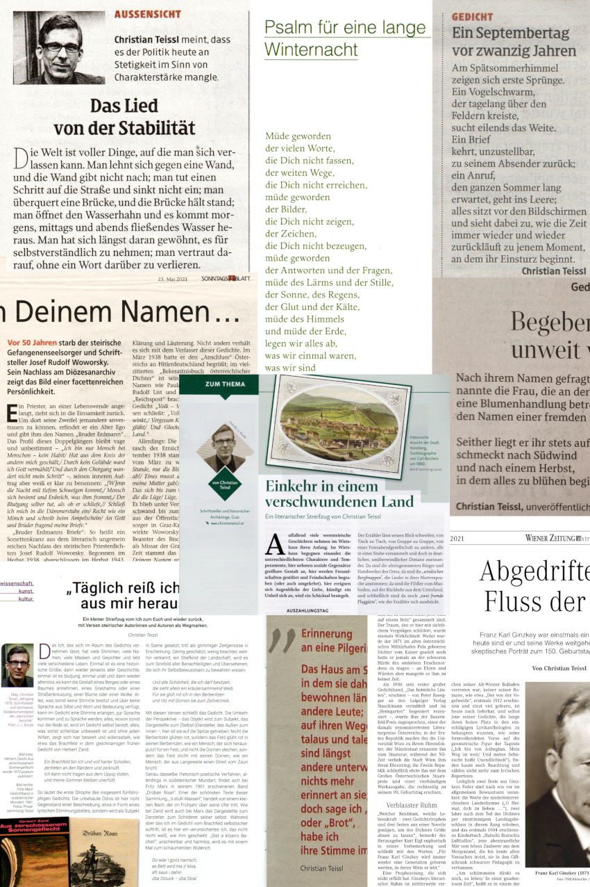 Veröffentlichungen im Jahr 2021: Gedichte, Porträts, Kommentare